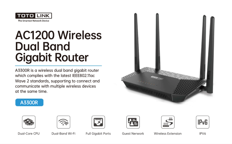Présentation des spécificités du produit A3300R de la marque Totolink